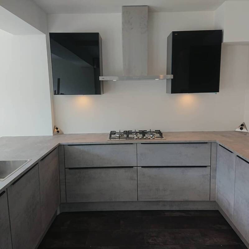 L-Keuken opstelling met wand kasten